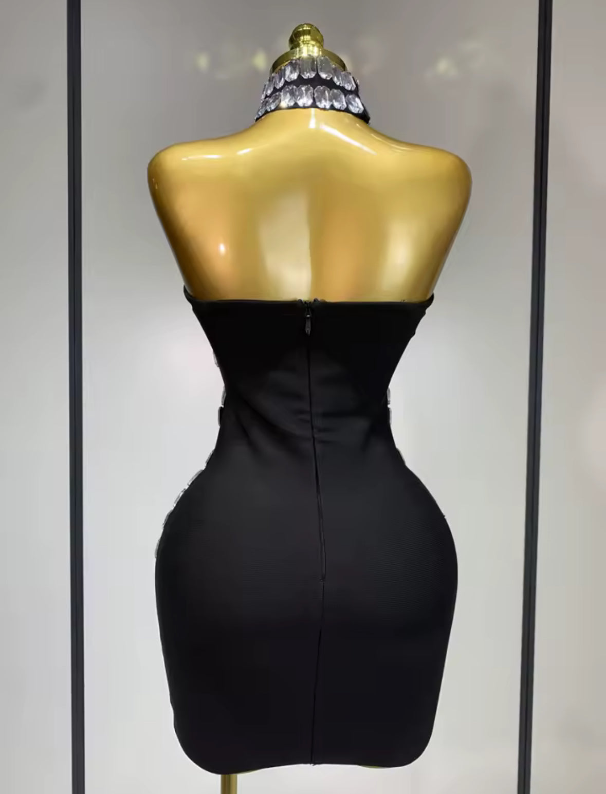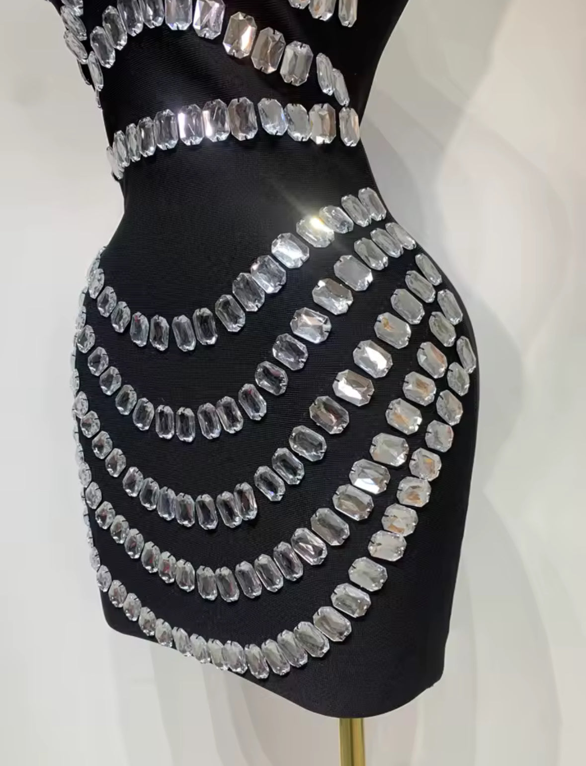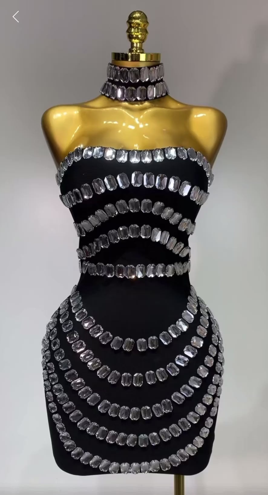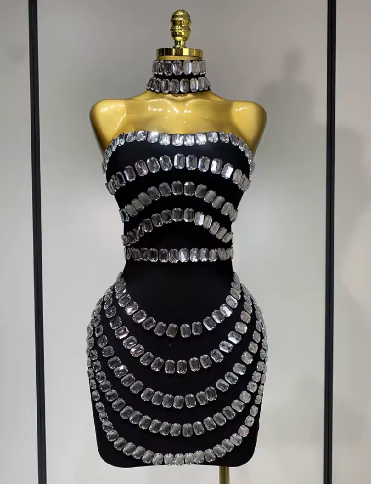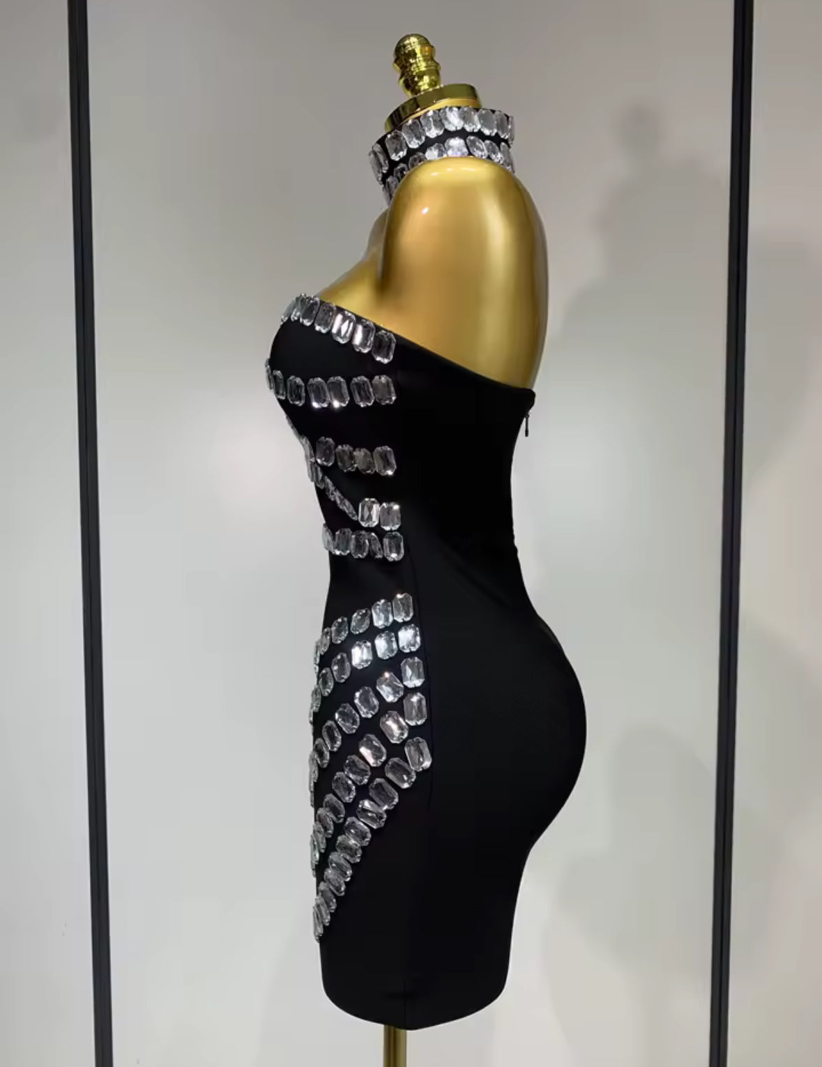 Serve pure opulence in the Diamond Drip Mini Dress — a show-stopping strapless statement piece designed to turn every head in the room. Crafted from our signature figure-hugging bandage fabric, this mini dress is drenched in oversized, glistening gem embellishments that wrap around your curves in cascading layers of brilliance. The built-in jeweled choker adds drama and luxury, making this dress the ultimate look for birthdays, red carpets, or upscale nights out.