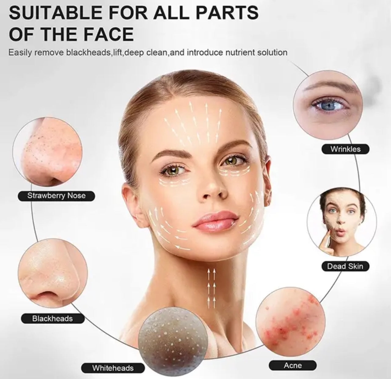 This innovative device effectively removes blackheads, acne, dead skin, excess grease, and makeup residue, leaving your skin flawlessly clean and refreshed. By accelerating metabolism and renewing skin cells, it softens old keratin, decomposes melanin, and enhances the dissolution of impurities for a clearer complexion.