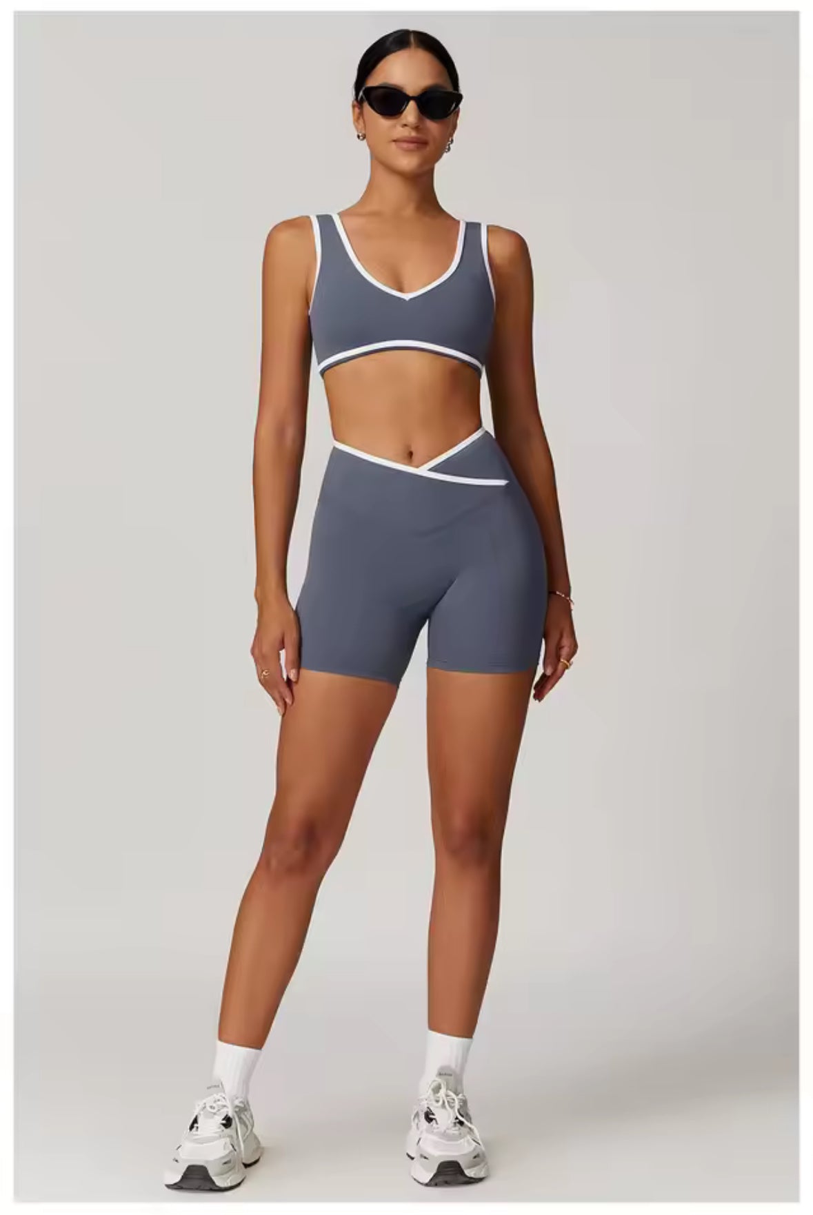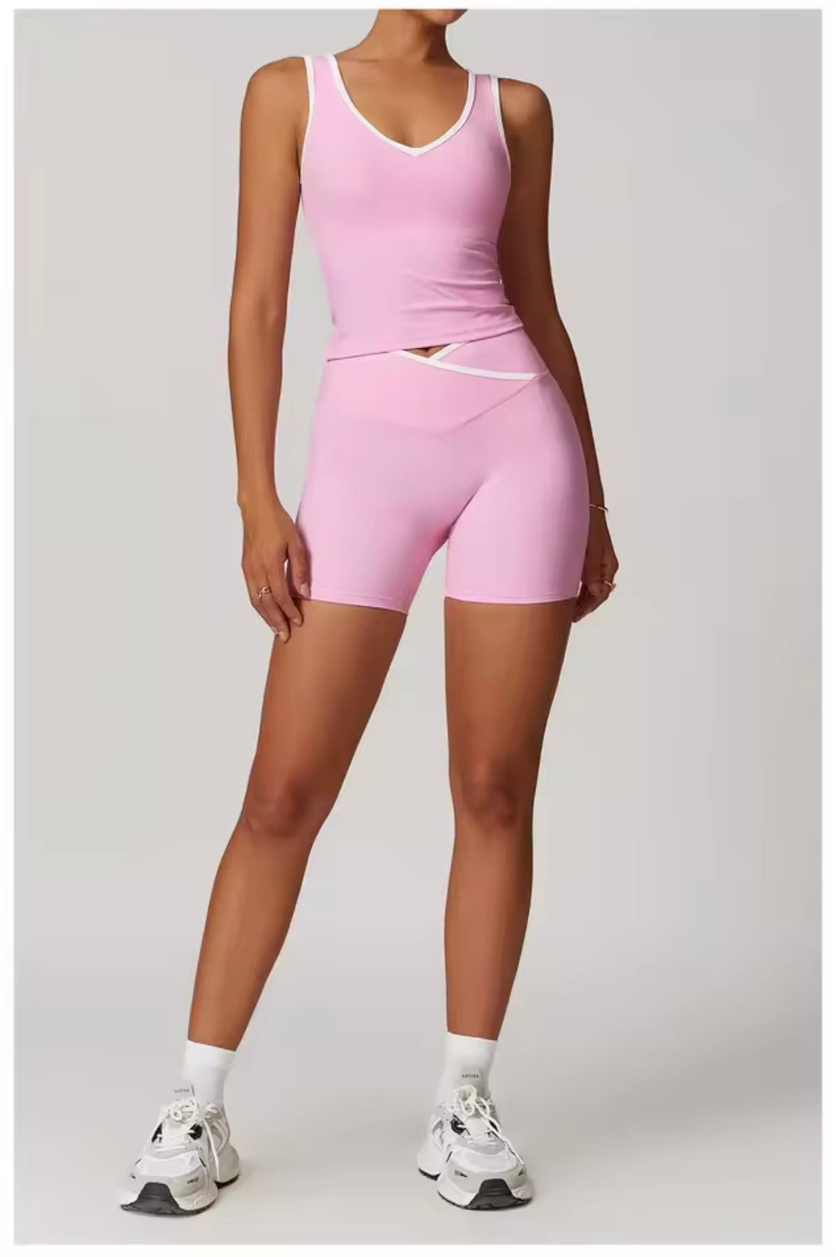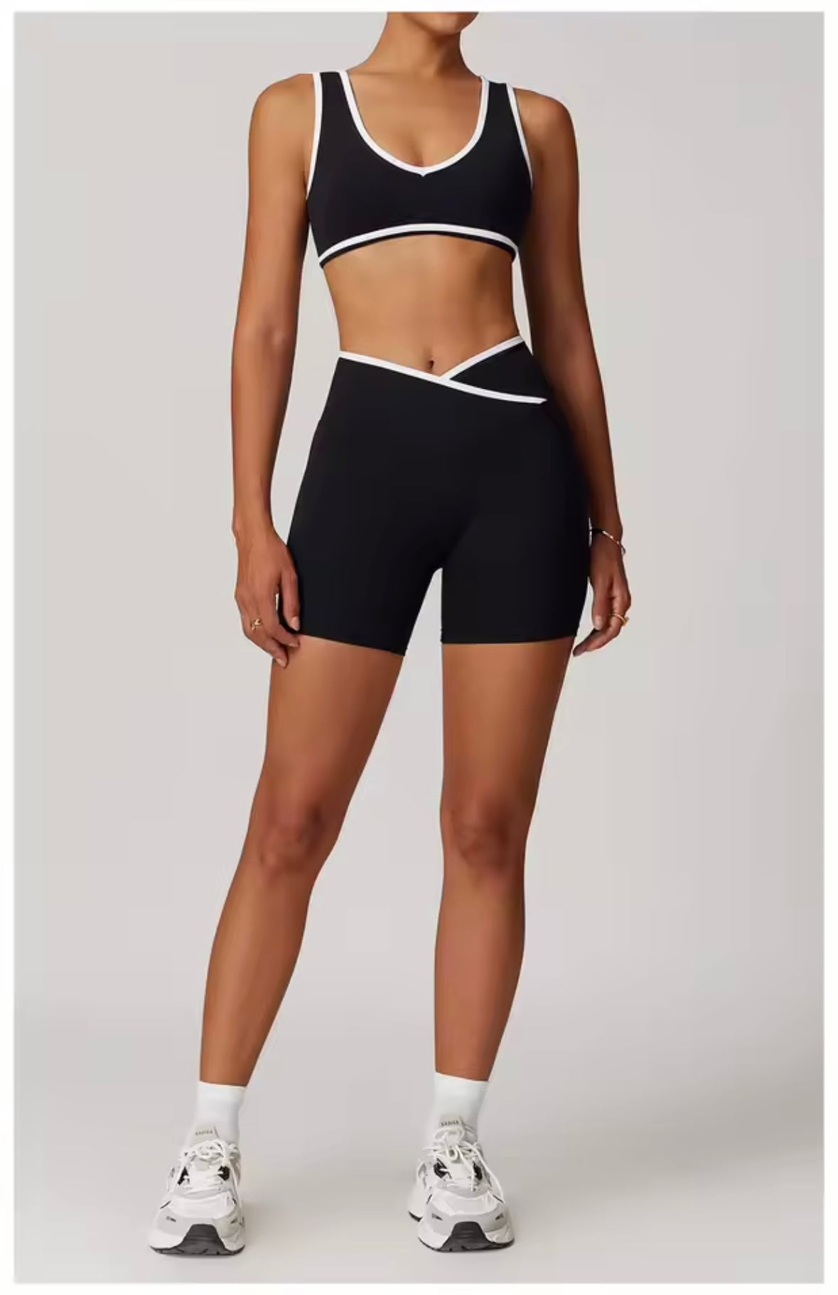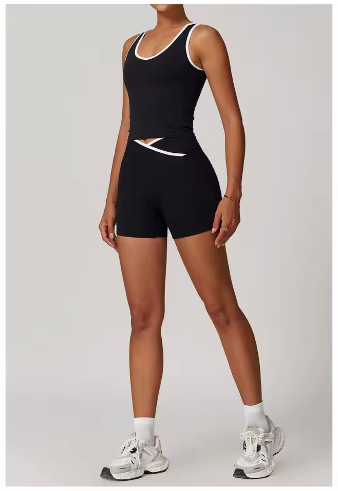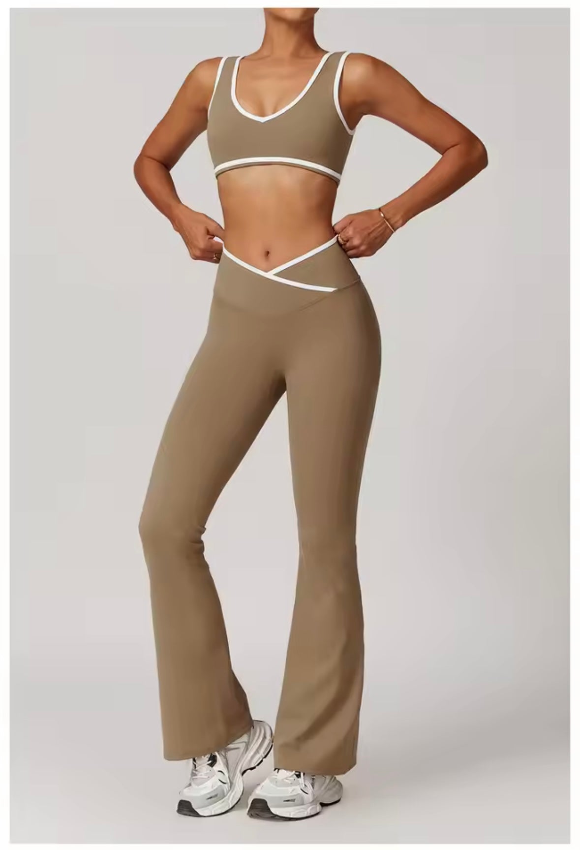 Crafted from buttery-soft, stretchy fabric, the set provides a second-skin feel with maximum comfort. The flattering cross-waistband detail sculpts your core while the contrast trim adds a chic, city-girl edge. Available in both full-length flared pants and biker shorts, plus matching crop tops and tanks, you can mix and match for every mood and activity.